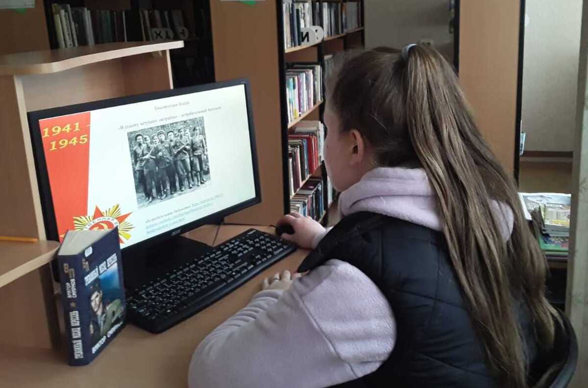 Великая Отечественная война и Победа в ней — слава и гордость России. Поэтому День Победы мы отмечаем, как главный праздник страны. Никогда не будет забыт подвиг тех, кто отстоял в боях Родину. В рамках знаменательного события в читальном зале прошла историческая игра «Подвиг уральцев». Ведущая рассказала о том, какой неоценимый вклад в разгром фашистских захватчиков внес Уральский край. Во время войны он стал мощной индустриальной базой, местом формирования воинских частей и подготовки боевых ресурсов. В ходе мероприятия ребята отвечали на вопросы, связанные с основными датами, событиями и фактами военных лет на Урале. Узнали о подвигах земляков на фронтах ВОВ. По иллюстрациям определяли памятники героям уральцам, отдавшим свои жизни на полях битв и сражений. В завершении посмотрели видеоролик «Уральский танковый добровольческий корпус».