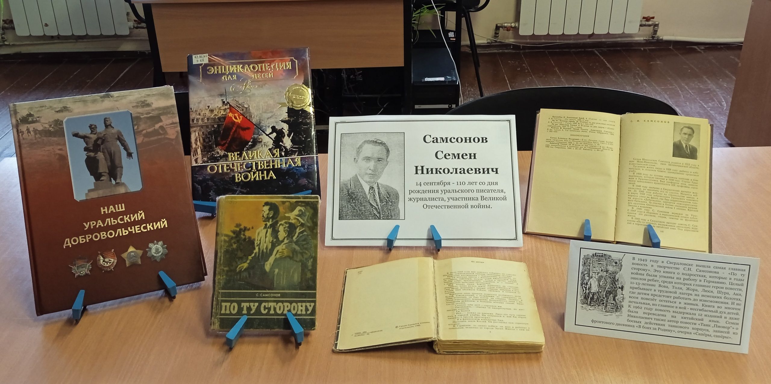 К юбилею известного писателя, журналиста, фронтовика, в читальном зале прошли громкие чтения отрывков из книги «По ту сторону». В начале мероприятия читатели познакомились с биографией Семена Николаевича, узнали о том, что он в марте 1943 года добровольцем Уральского танкового корпуса ушел на фронт. Подростки зачитывали фрагменты из повести о детях, которые в годы войны были угнаны на работу в Германию и делились своими впечатлениями от прочитанного.