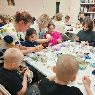 Для ребят клуба выходного дня «Всезнайка» прошел мастер-класс по декорированию кашпо из гипса под руководством…