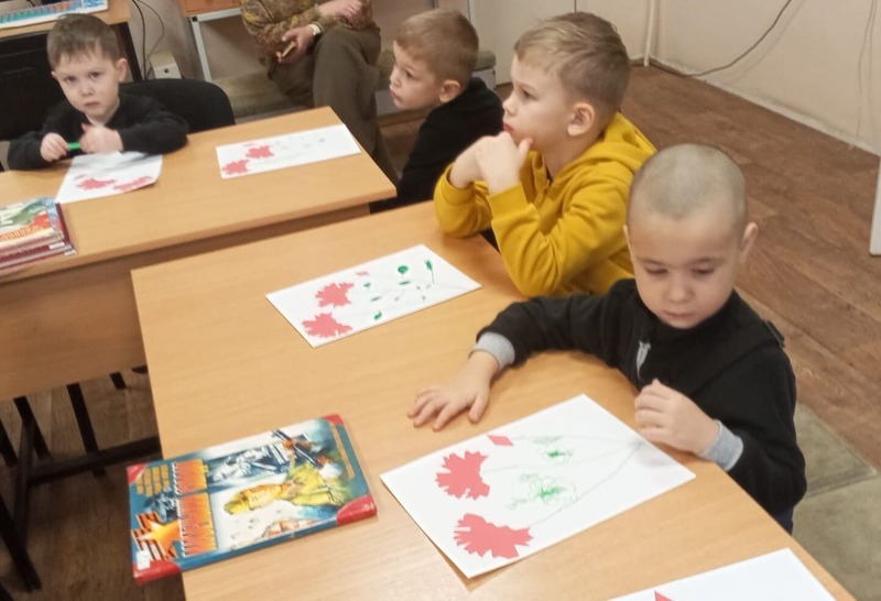 Библиотекарь показала по презентации памятные места Волгограда: Мамаев Курган, Солдатское поле, Площадь героев. Дети сделали из бумаги композицию «Гвоздики».