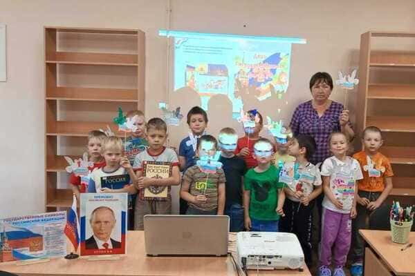 Проведён мастер-класс «Мастерим флажок». Дошкольники старательно выводили на бумаге контуры флага, раскрашивая его в нужные цвета. Каждый ребёнок вложил в свою работу мастерство и творчество. Ведущая познакомила детей с яркими и красочными энциклопедиями о России.
