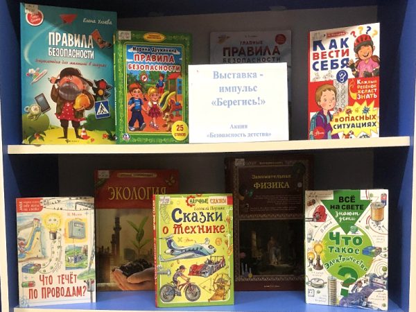 Ребят ждала тематическая выставка-импульс «Берегись!», призывающая к осторожности. Страницы книг, посвященных правилам техники безопасности, бережно перелистывались маленькими пальчиками, открывая важные истины.