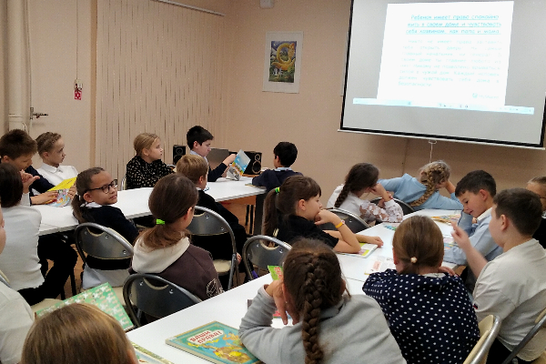 Ведущая познакомила с книгами: П. Астахов «Я и школа», С. Лаврова «Увлекательные истории о правах», В. Лукин «Книга о правах человека», Е. Шабельник «Ваши права». Дети приняли участие в викторине «Права и обязанности детей», продемонстрировав знания и проявив активный интерес к изучению правовых вопросов.